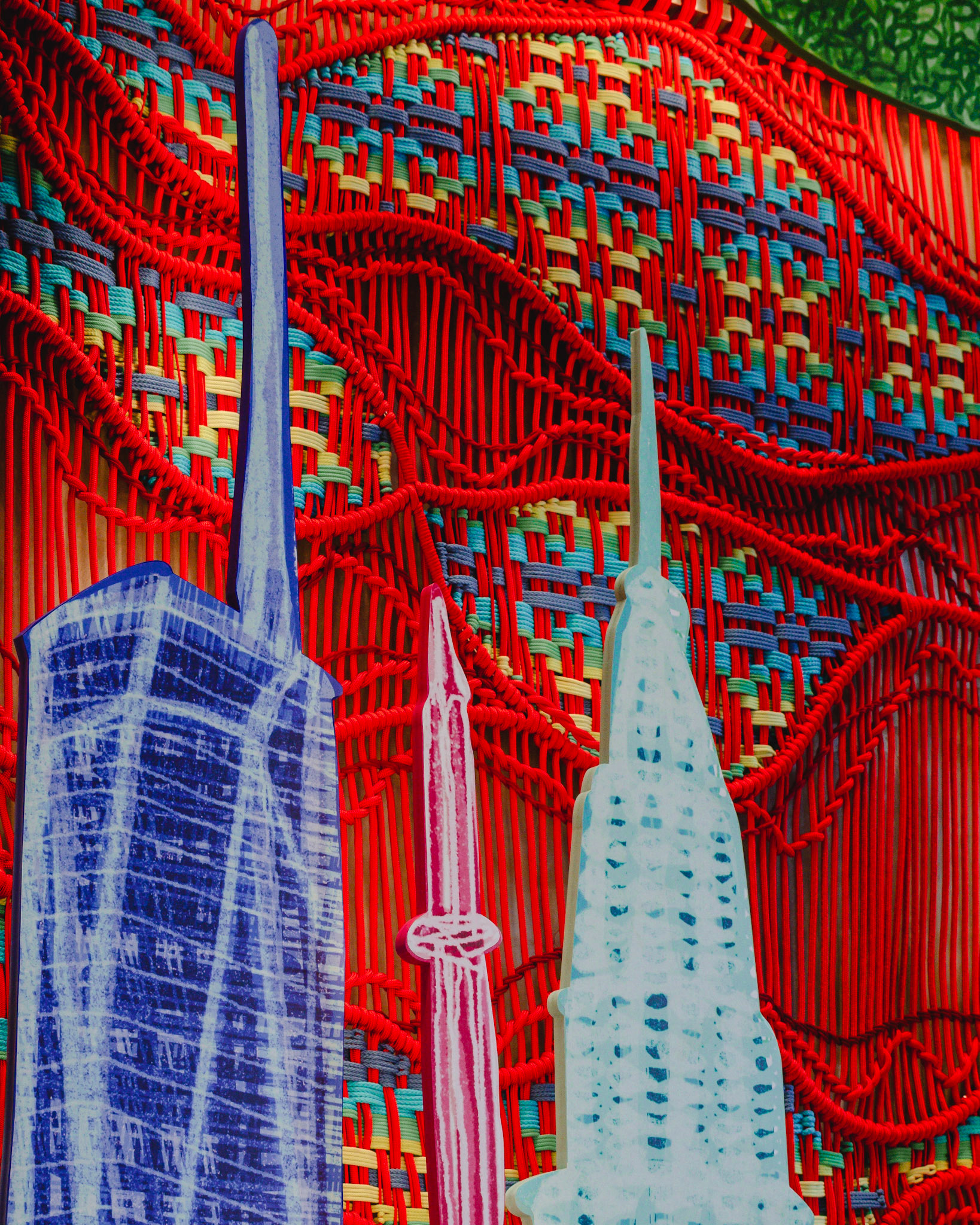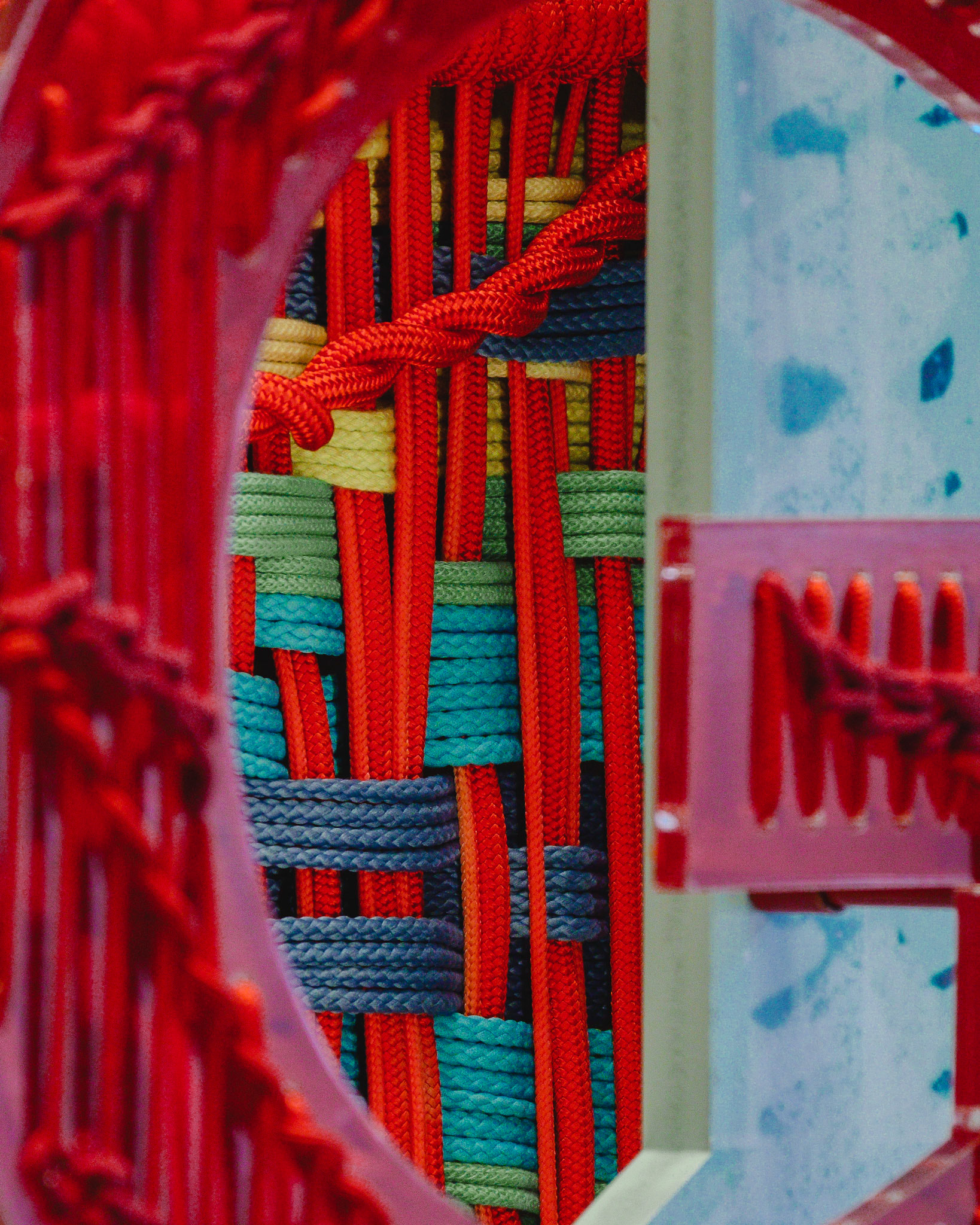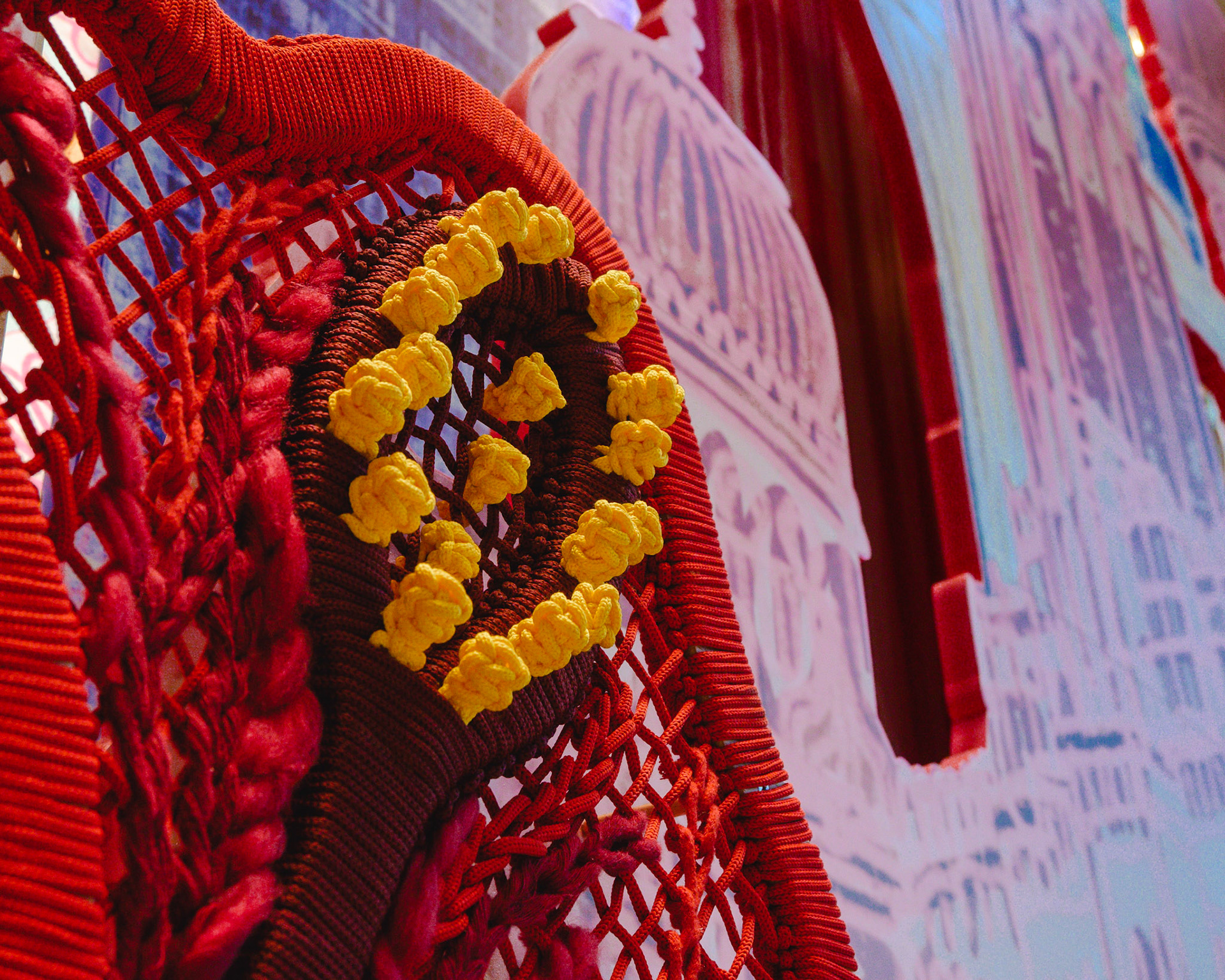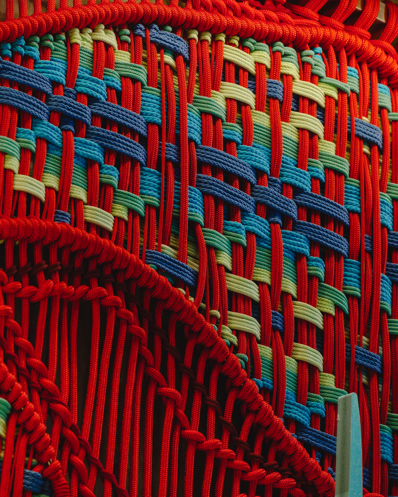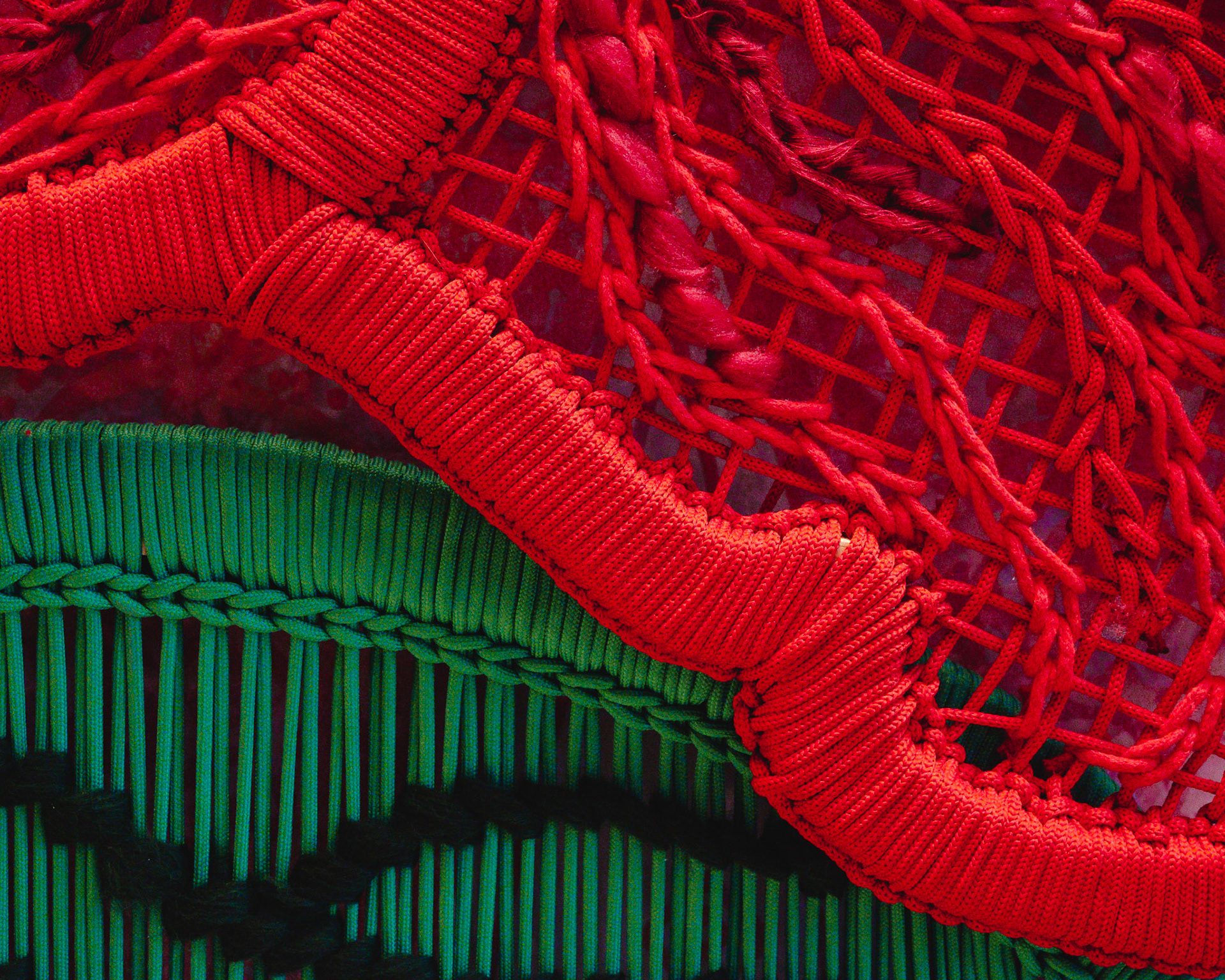 Each knot and strand captures the rhythm of the journey, the meeting of worlds; mapping mountains, valleys, and moments along the way, while the layered collaboration with Afi Sulaiman’s 2D illustrations creates a meeting point between texture and image, tradition and modernity.