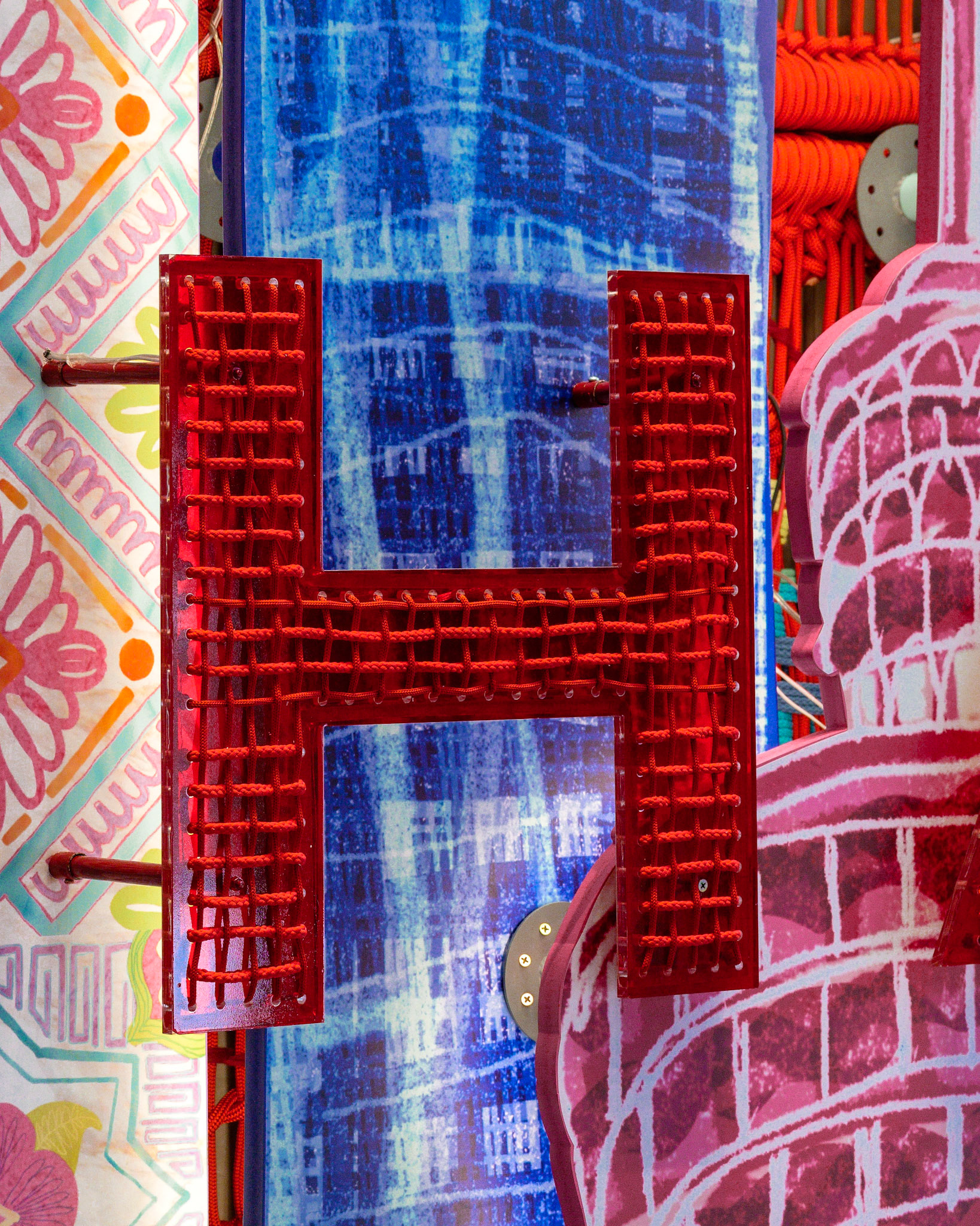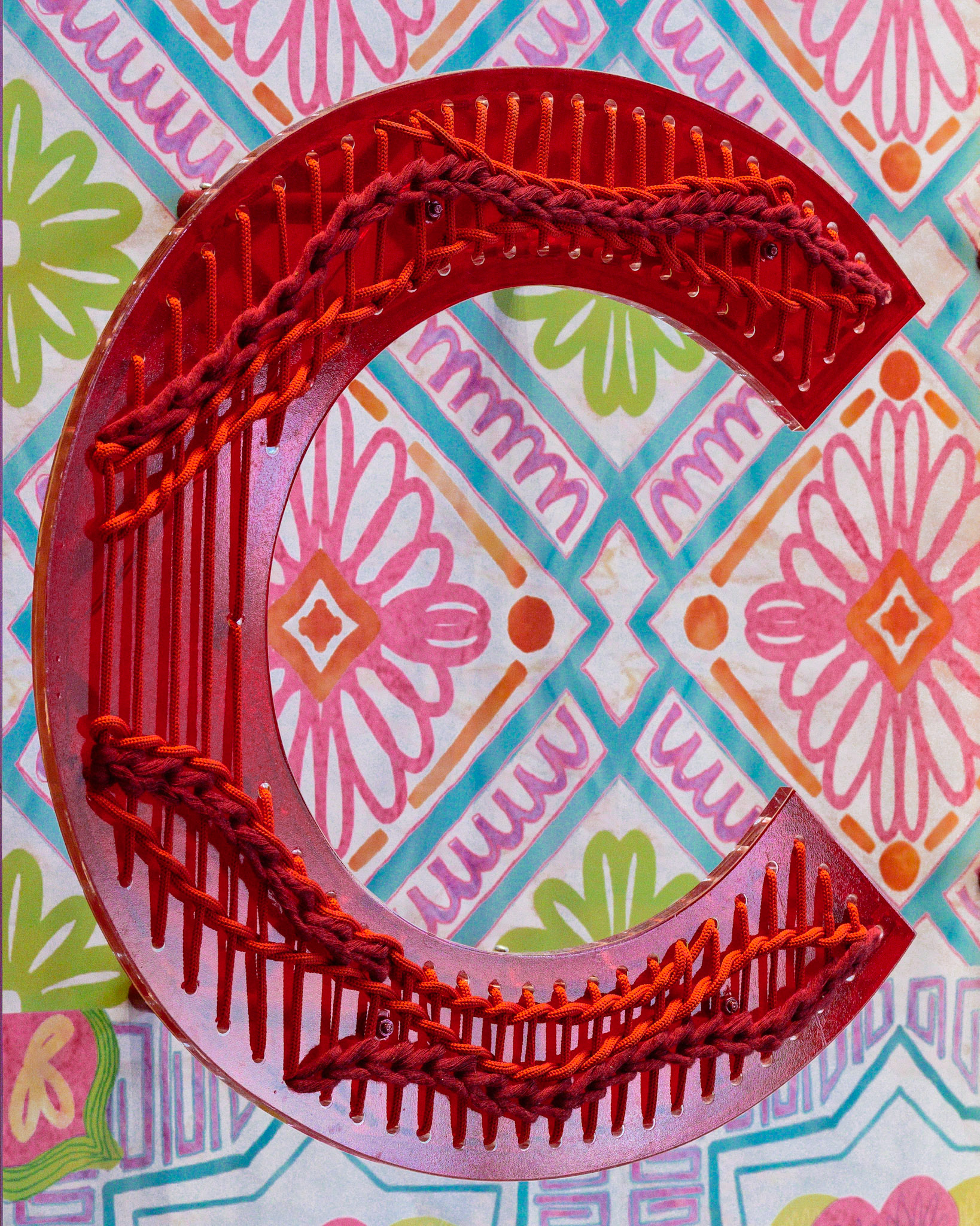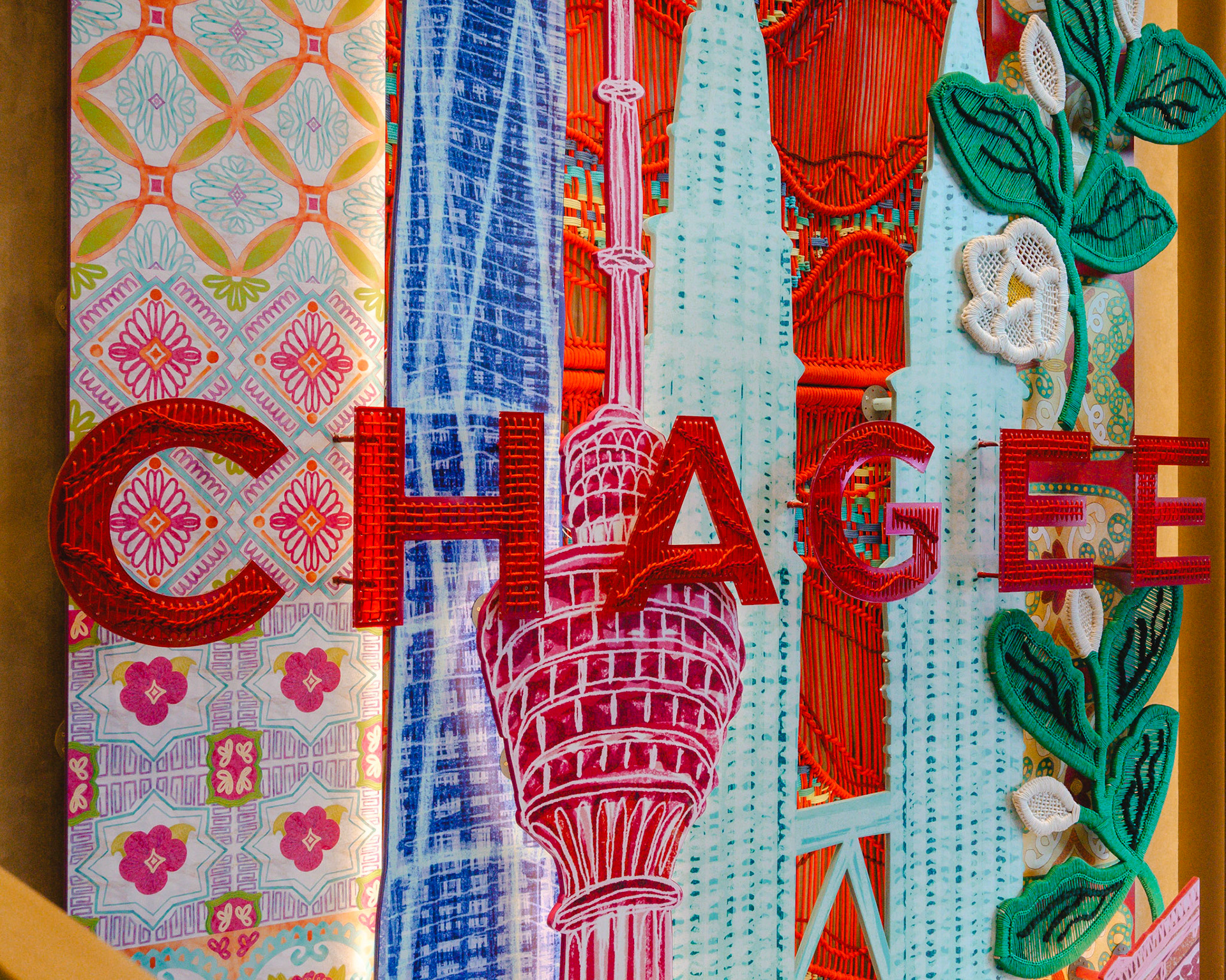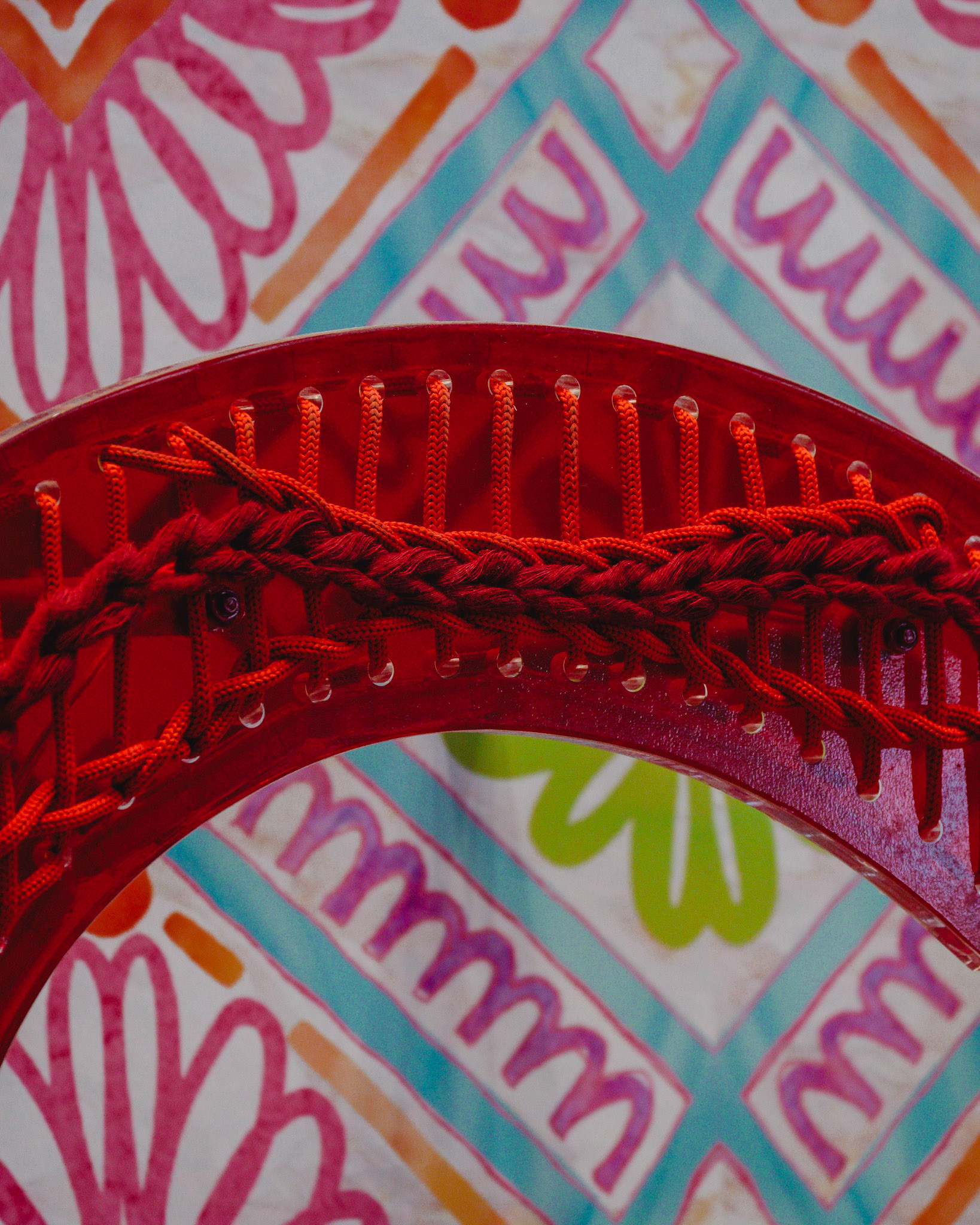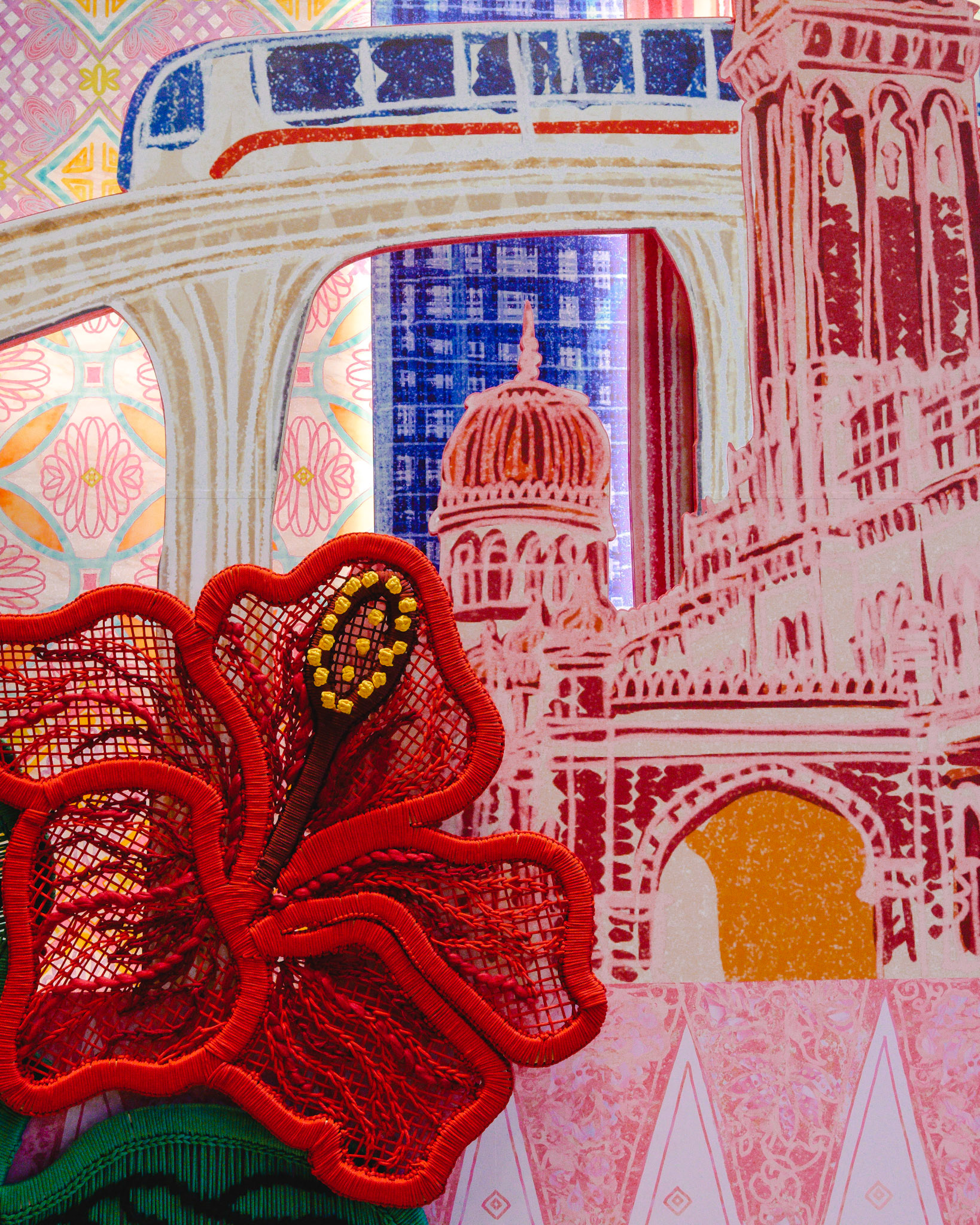 Each knot and strand captures the rhythm of the journey, the meeting of worlds; mapping mountains, valleys, and moments along the way, while the layered collaboration with Afi Sulaiman’s 2D illustrations creates a meeting point between texture and image, tradition and modernity.