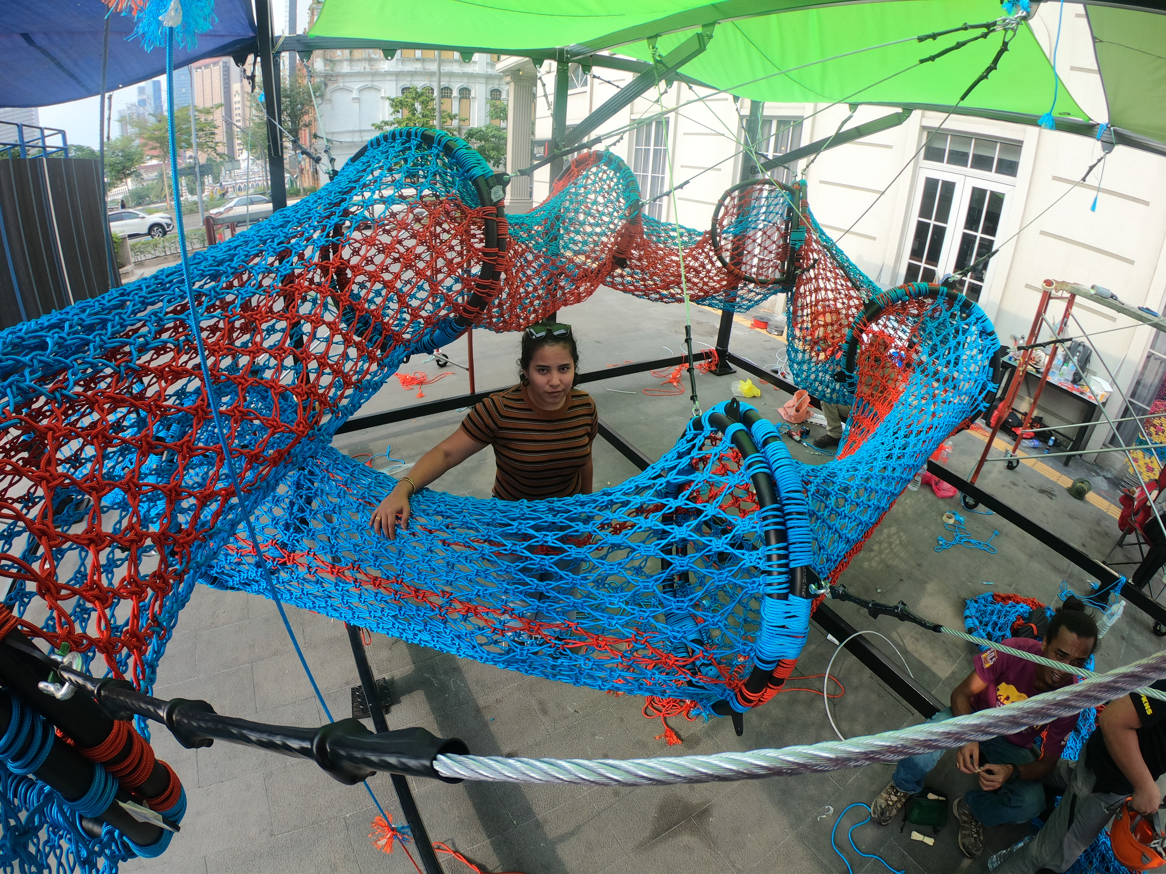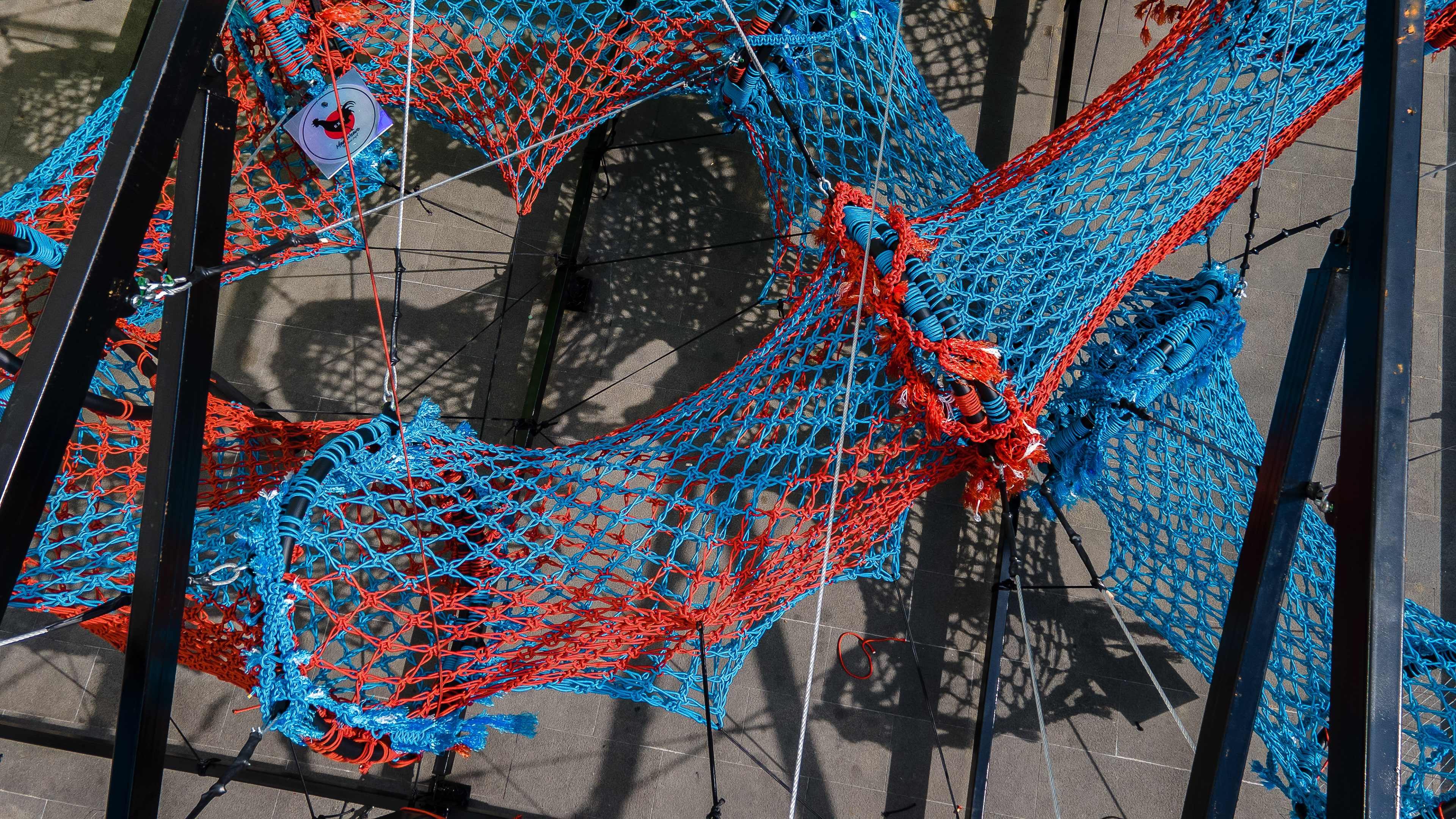 Material: Braided Nylon & Rubber Ropes (6400 metres) + Cable Wires (250 metres)
