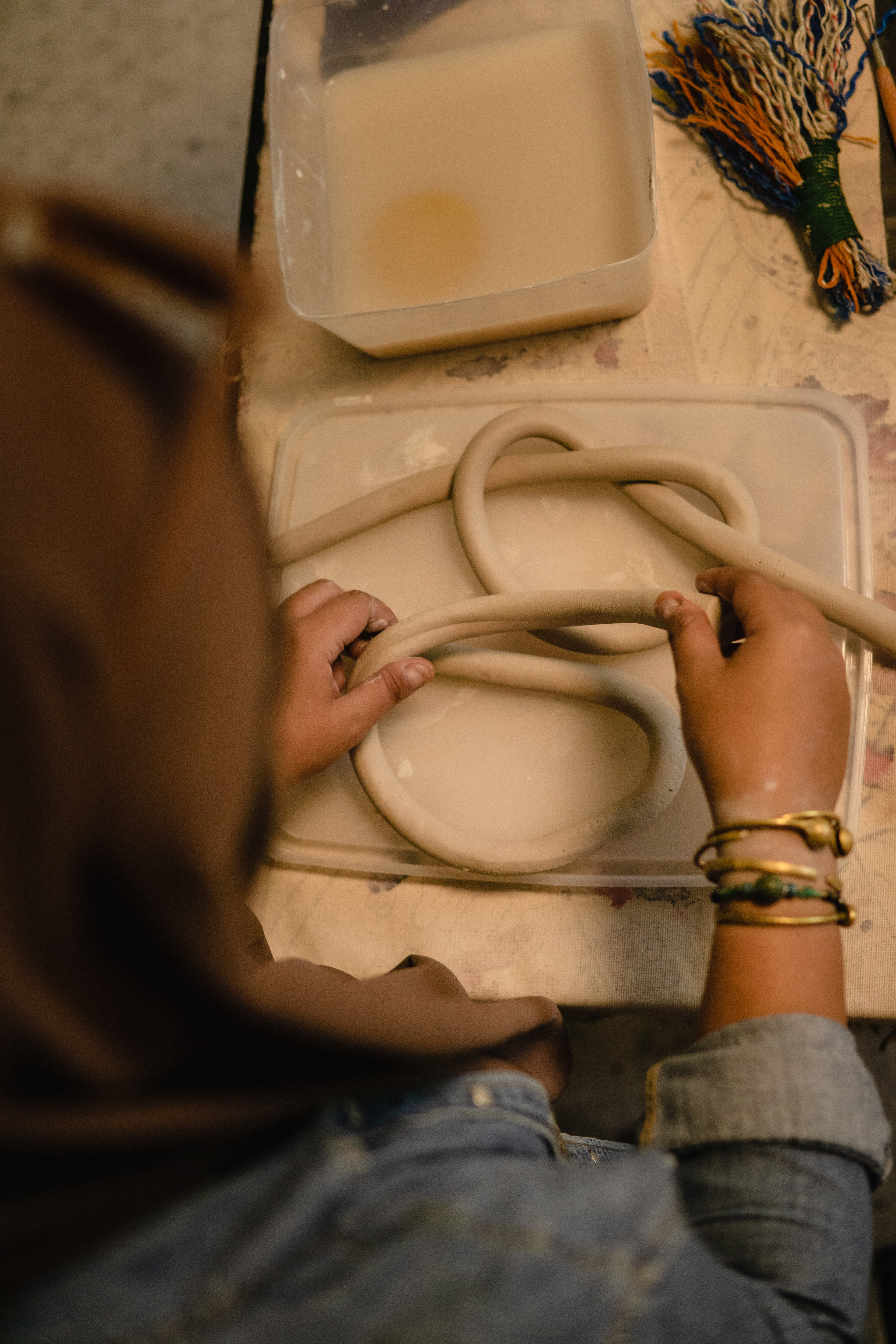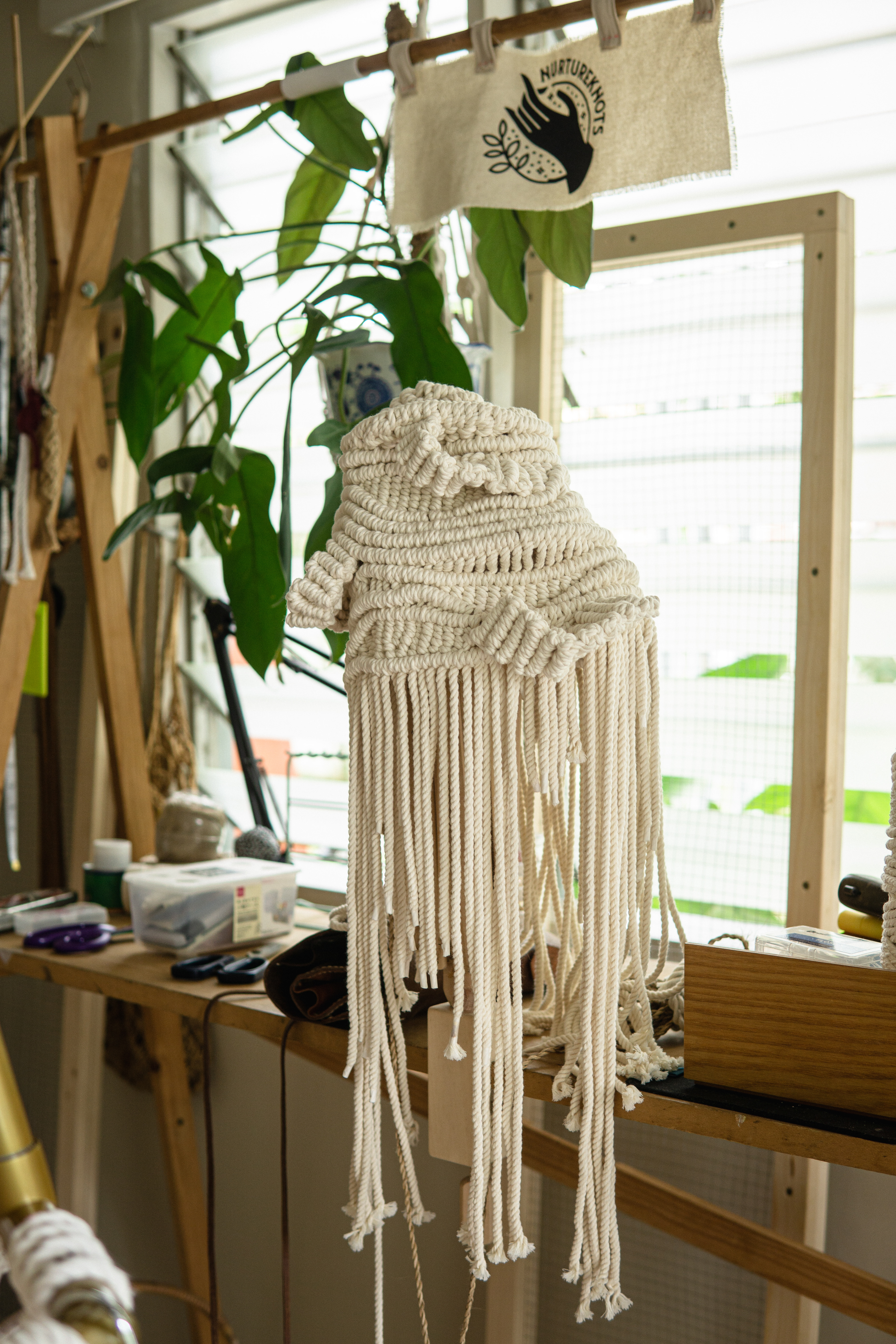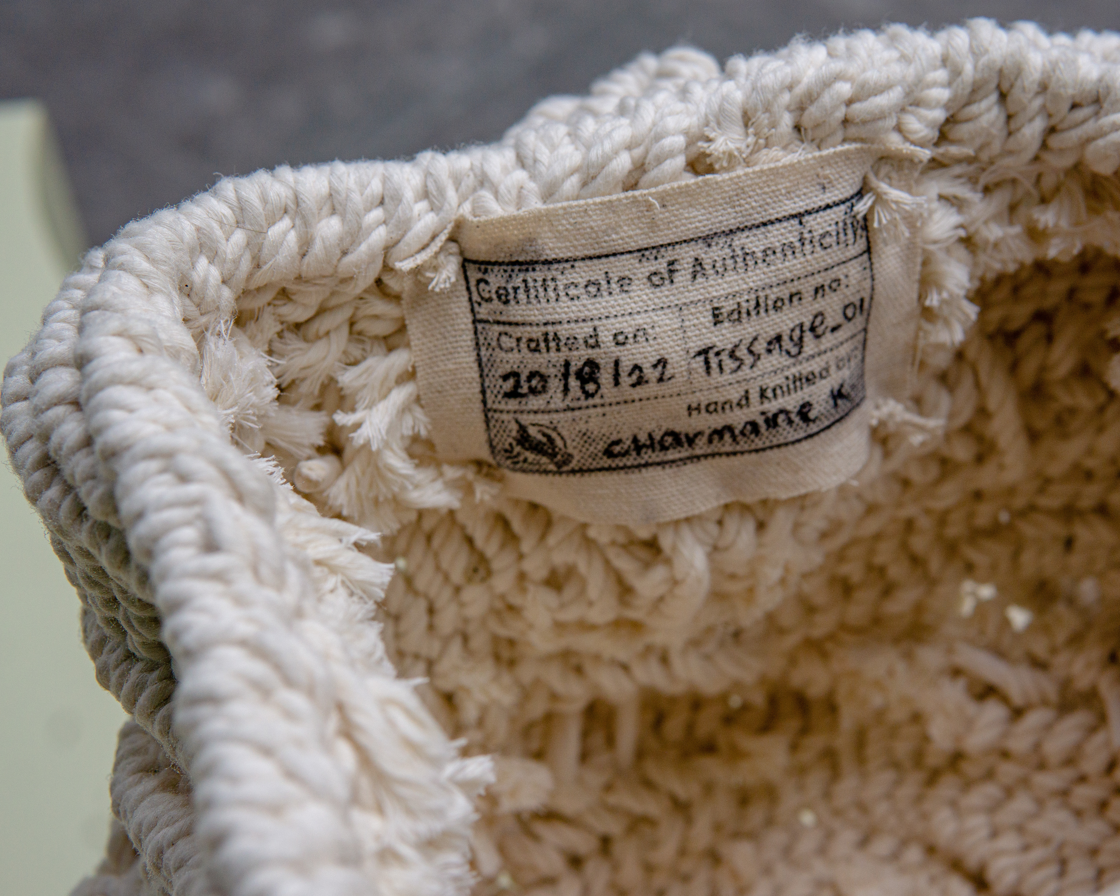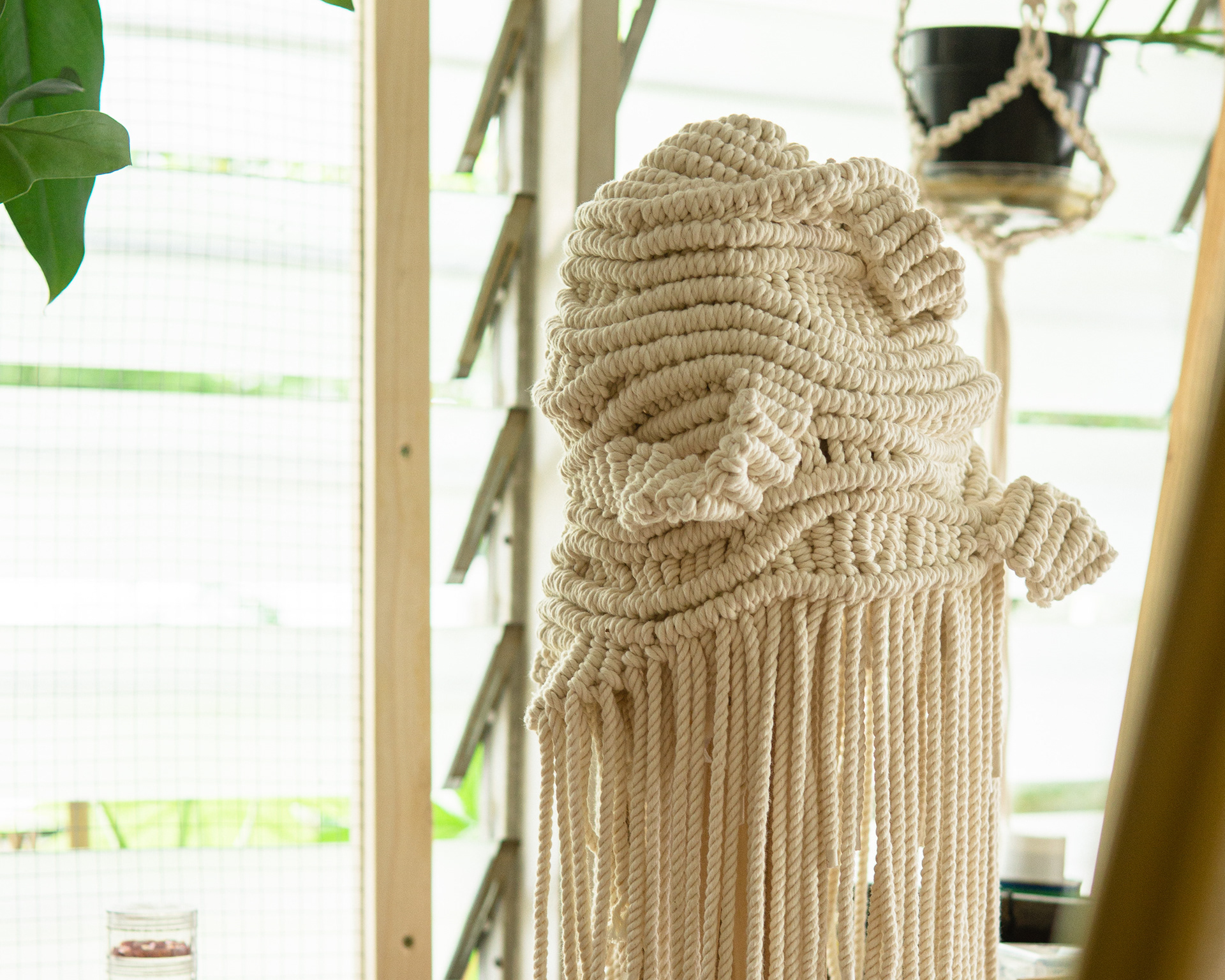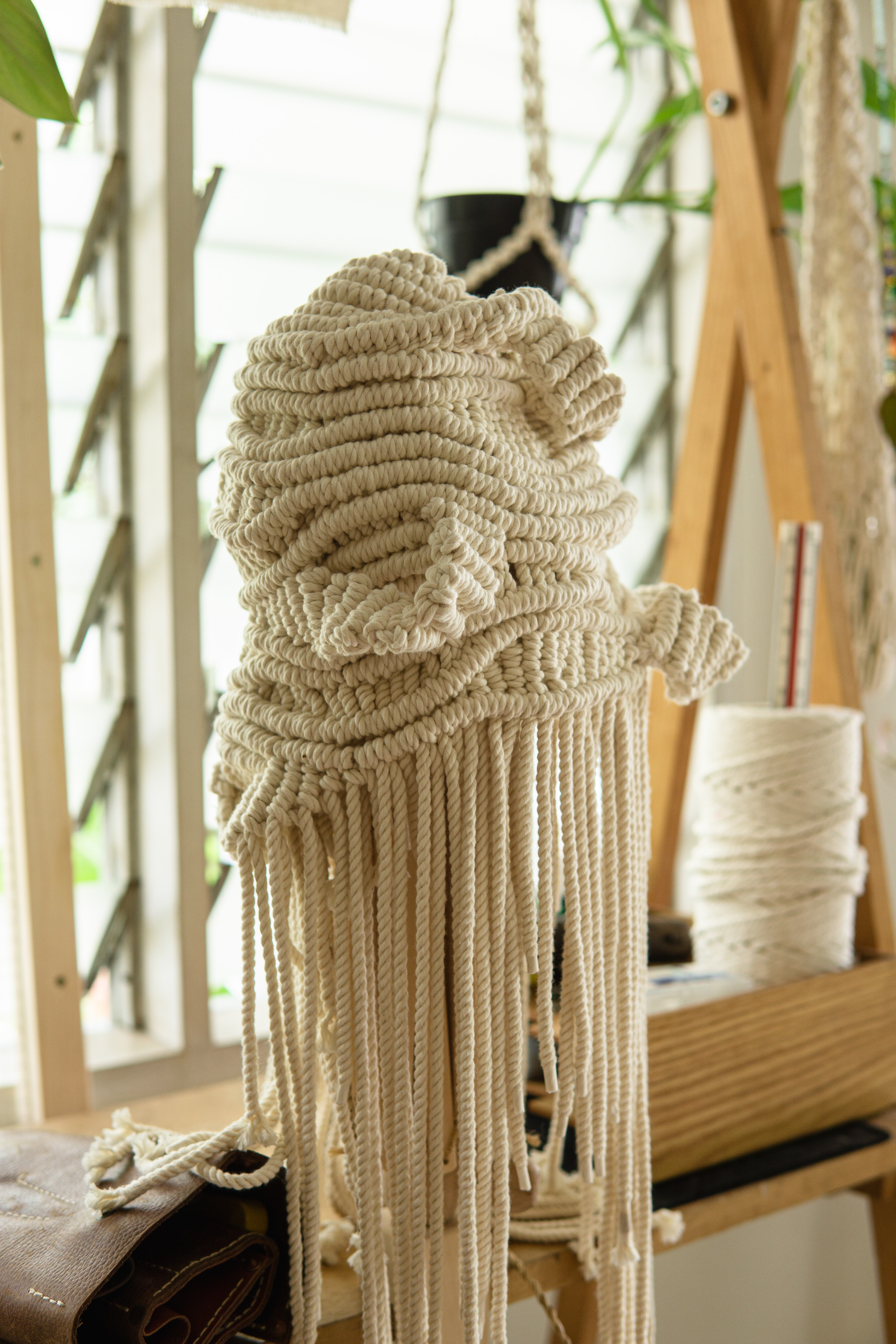 Tissage – An organically shaped vase sculpted entirely from 5mm three-ply rope. Guided by intuition, the form was shaped by hand, allowing its natural flow and curves to emerge freely. The piece embodies the meditative and expressive nature of handcraft, where form takes shape through rhythm and instinct.