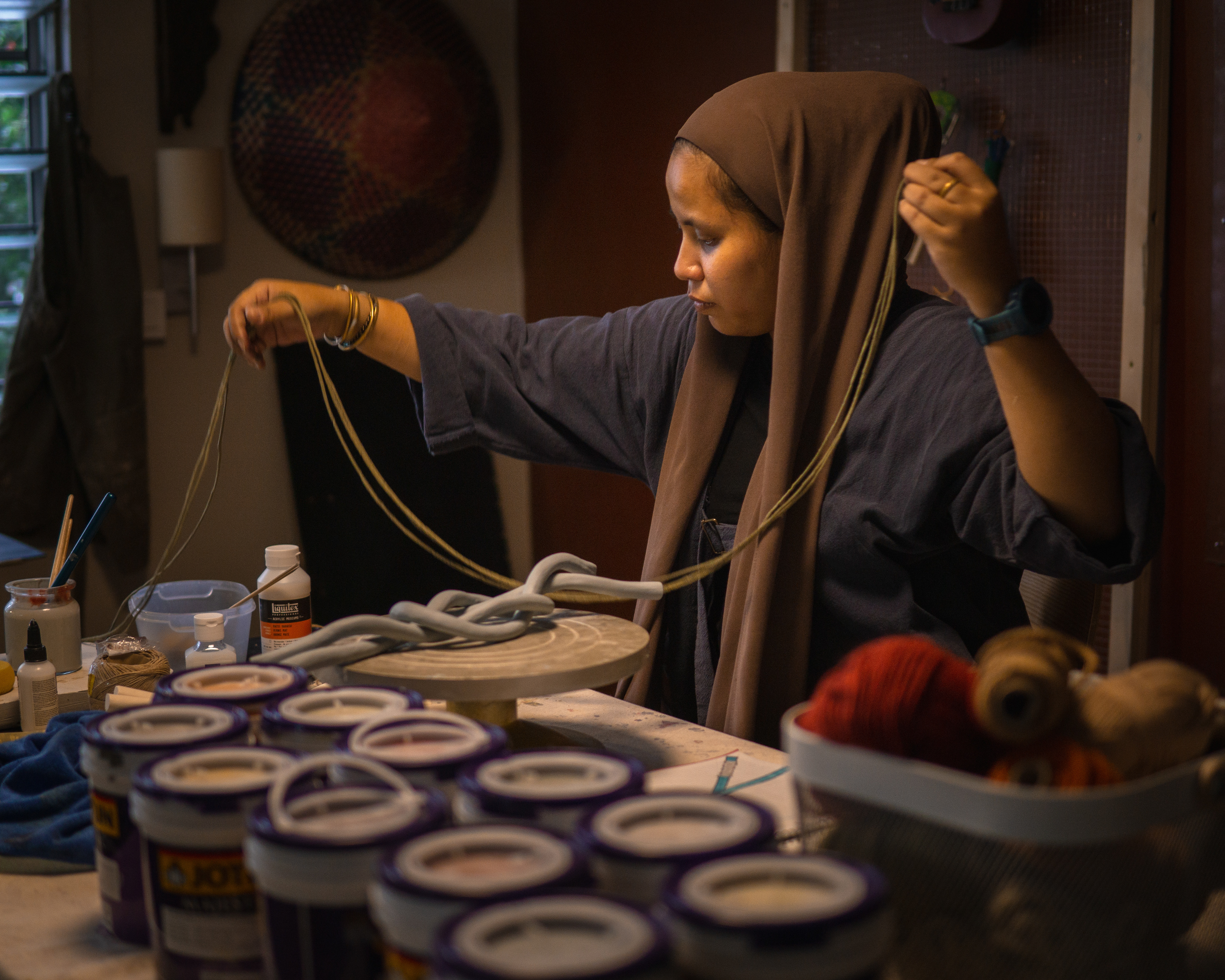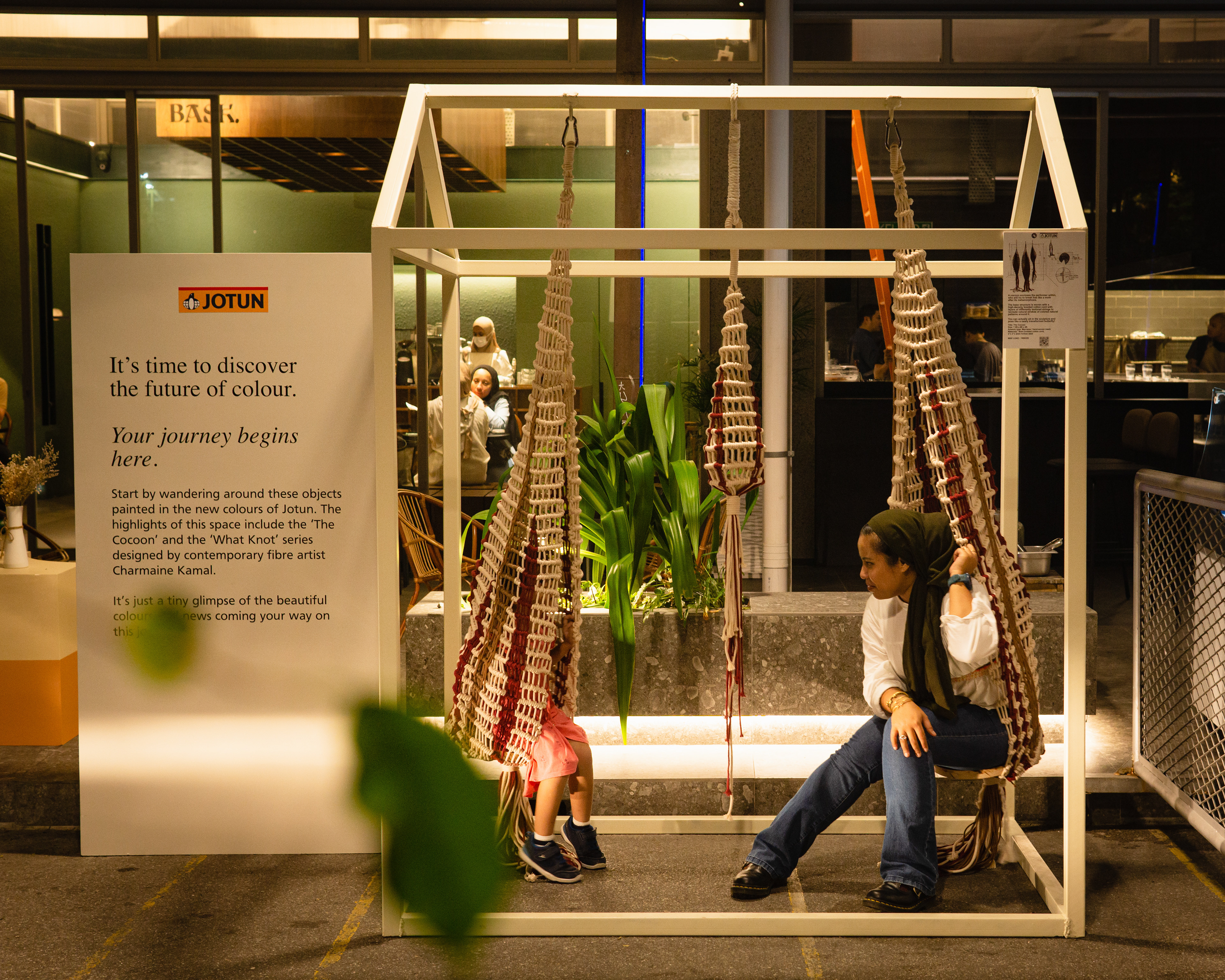 In 2023, I had an opportunity to collaborate with Jotun Malaysia for their “Stories” Color Campaign. I created a series of sculptural pieces specially for Jotun, which were exhibited during the Color Launching & Campaign showcase. The works reflected the interplay between material texture and Jotun’s color palette, translating hues into tactile woven forms that aligned with the campaign’s narrative on personal and emotional connections to color.