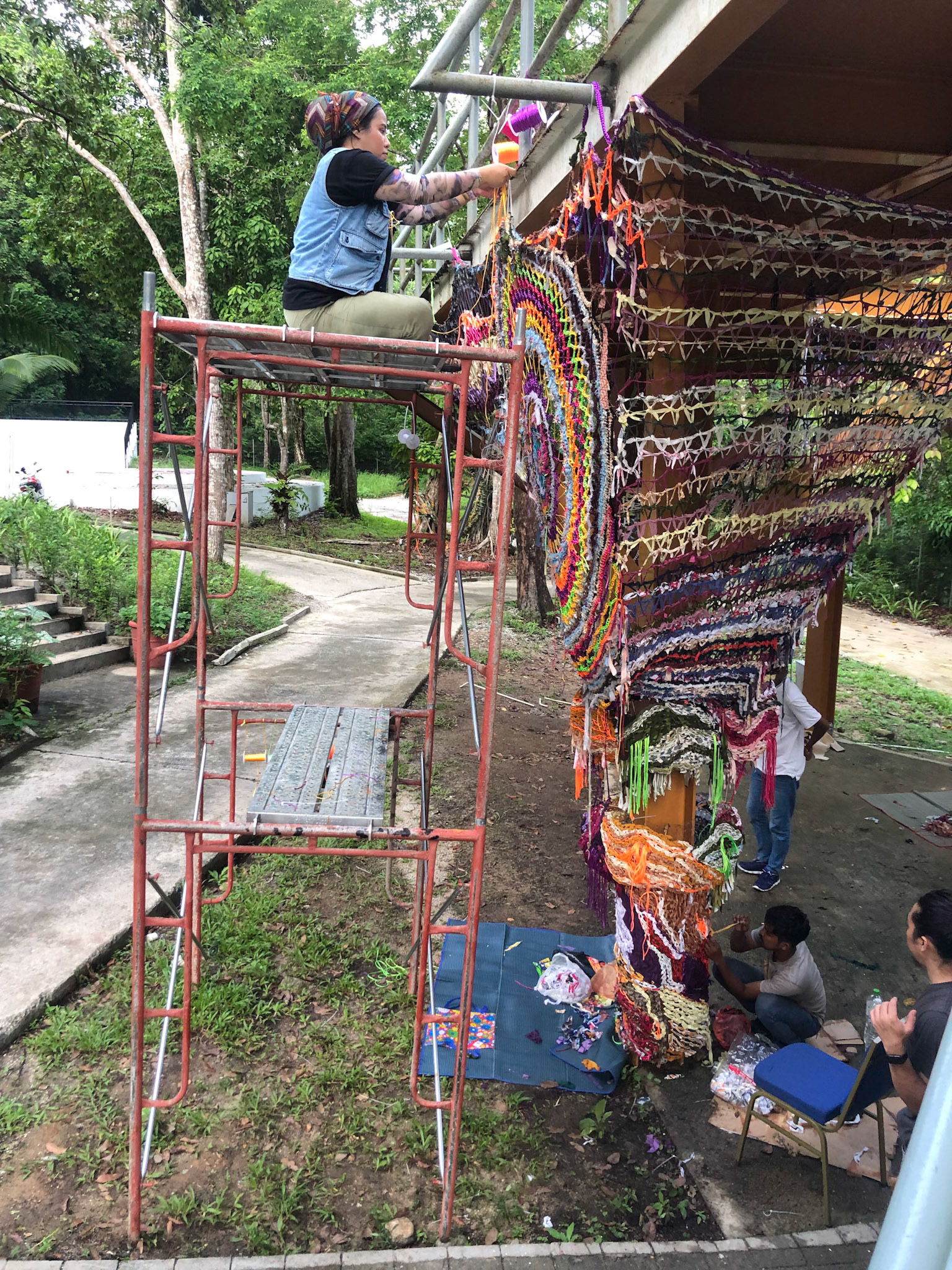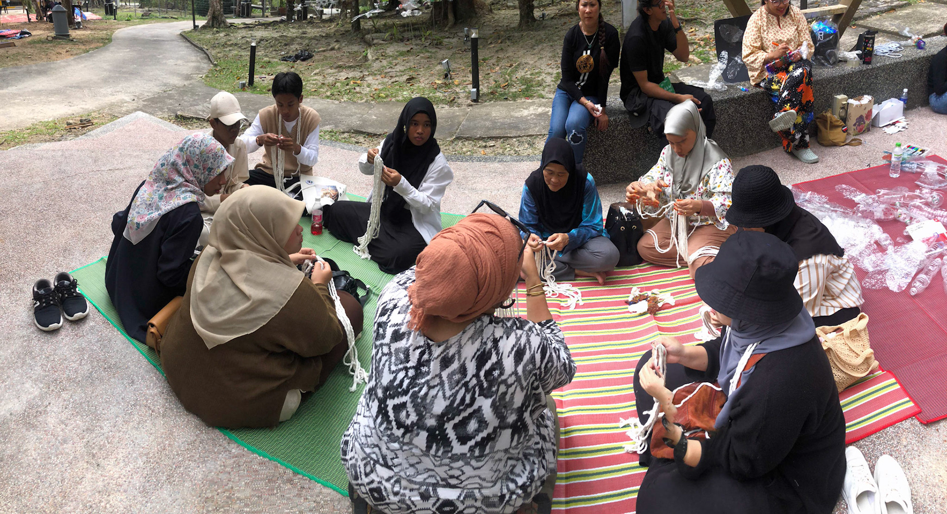 In 2023, we organized a two-weeks upcycling workshop program at Kampung Buku Langkawi, as part of the Waste to Art initiative. The objective of this initiative was to revive the once vibrant “village of books”, a space originally established by Tun Dr. Mahathir Mohamad, and reimagine it as a thriving community hub under the stewardship of Dream Forest Langkawi Park.